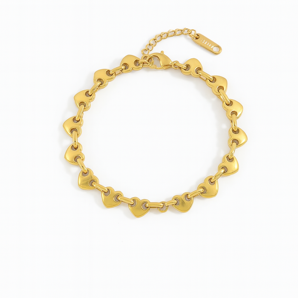 The Brave Heart Bracelet is for the woman who faces her fears and still chooses to show up. Featuring solid heart links and finished in 18k PVD gold plating, this stainless steel heart bracelet is waterproof, tarnish-resistant, and made to last. Whether stacked or worn solo, this piece speaks strength a daily reminder that courage doesn’t mean being unafraid, it means doing it anyway.