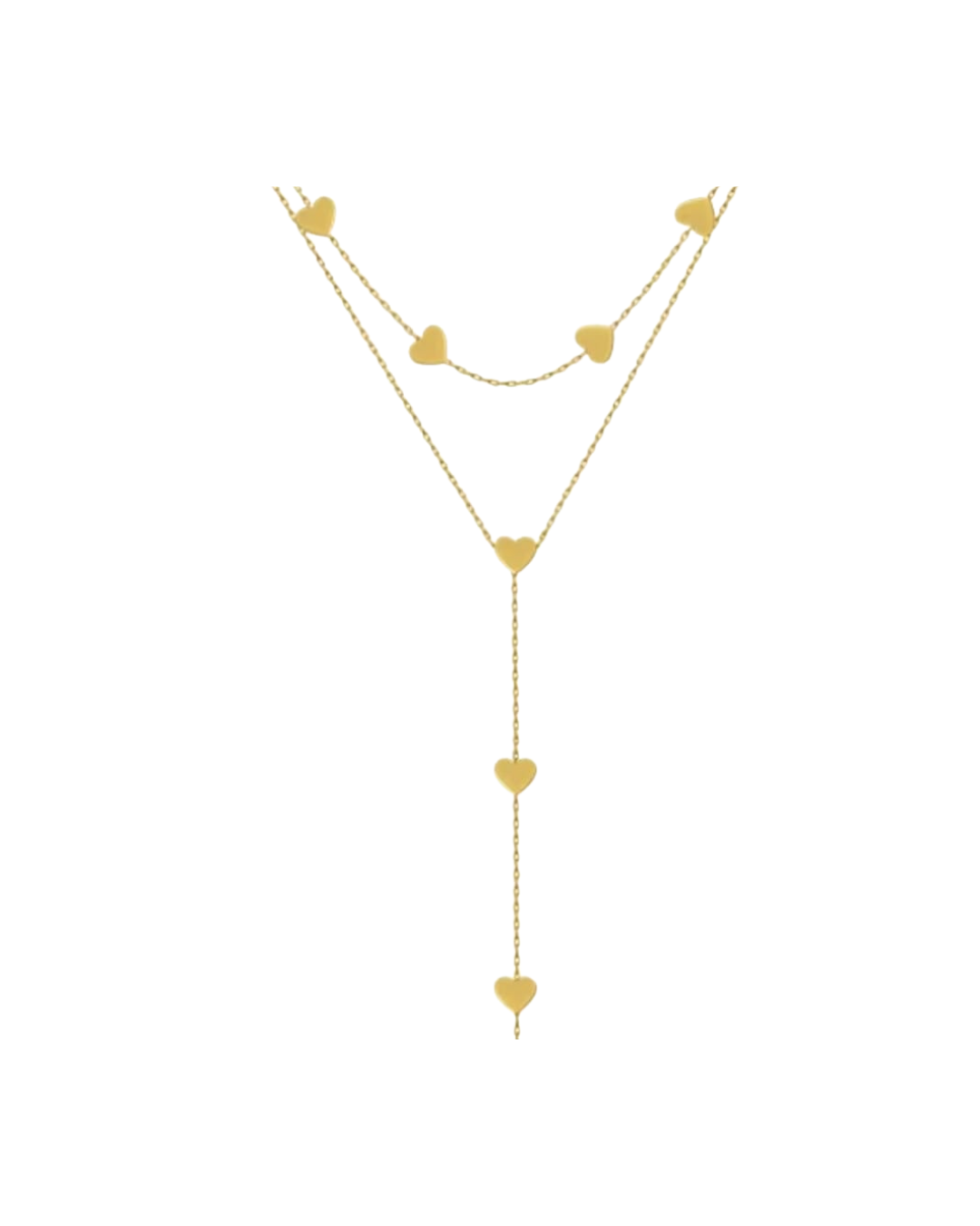 xA layered heart-drop necklace crafted in 316L stainless steel and finished in glowing 18k gold plating.