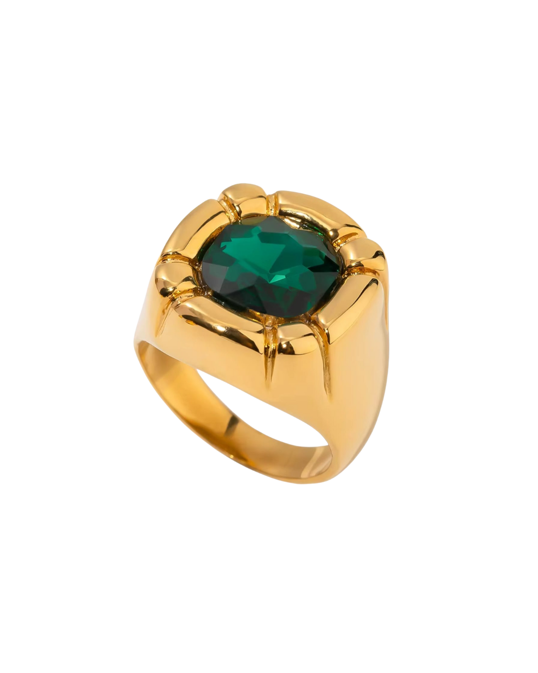 xCrafted from stainless steel with an 18k gold finish, Never Envy makes her presence known. This bold, stacked-look ring features layered rows of brilliance that demand attention.